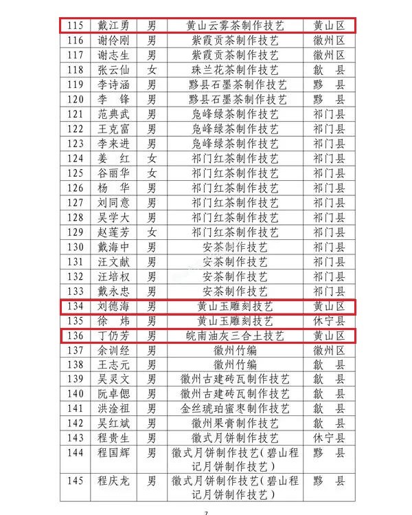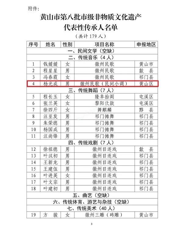 附:黃山市第八批市級非物質文化遺產代表性傳承人名單